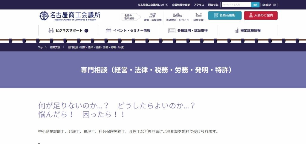 - 相談予約 : 名古屋商工会議所経営相談オンライン予約まで